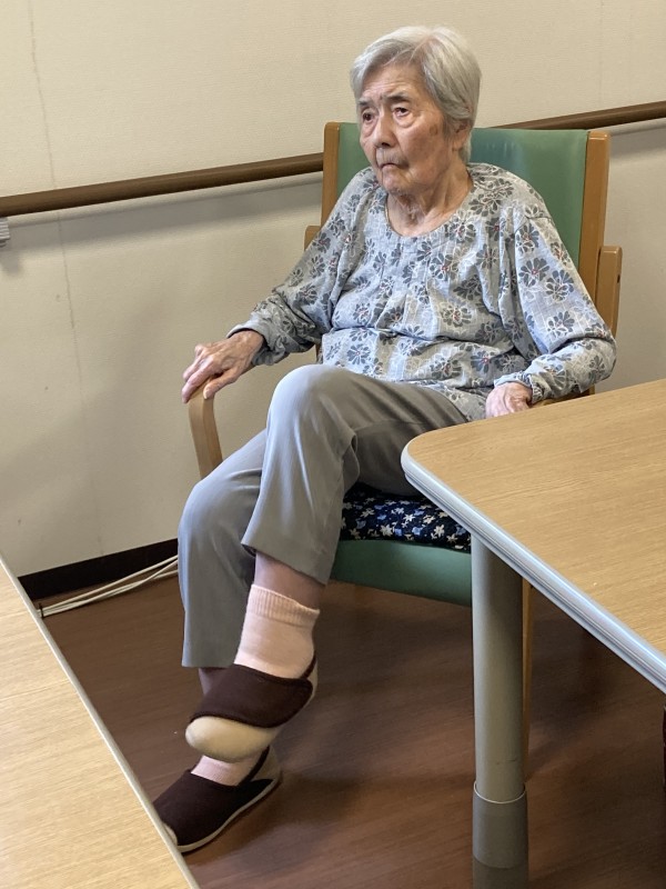 このような足上げの運動も地味ではありますが筋力低下を防ぐために行っていただいています。