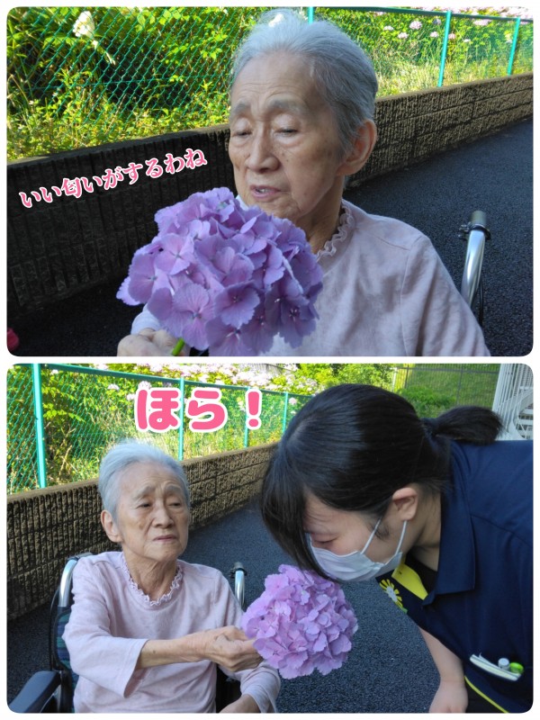 雨に濡れた紫陽花が太陽の光を浴びて輝くように