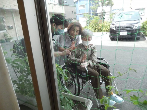 只今、成長中のゴーヤを一緒に見ながら、とお散歩を楽しんでいただきましたぁ(*^^*)