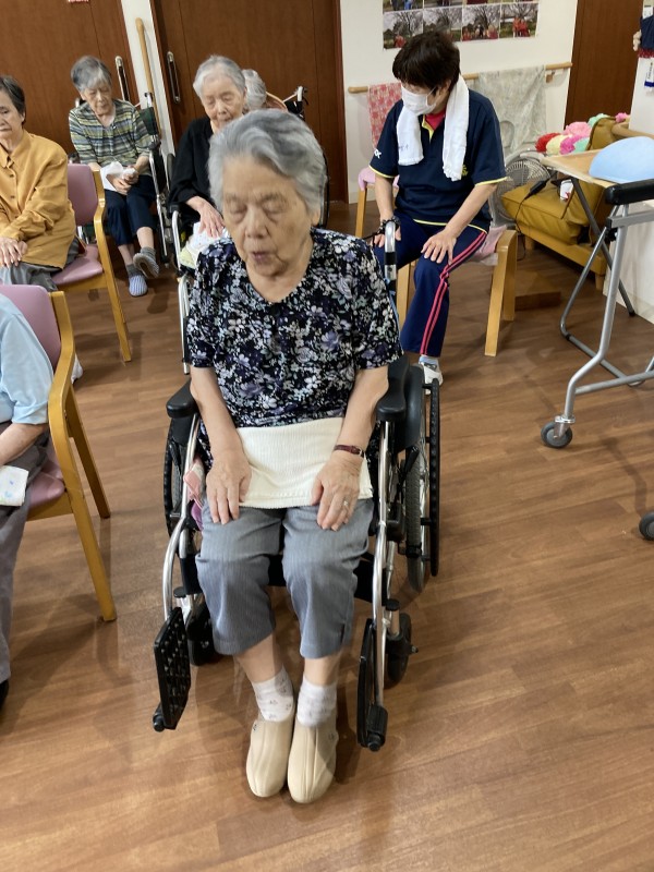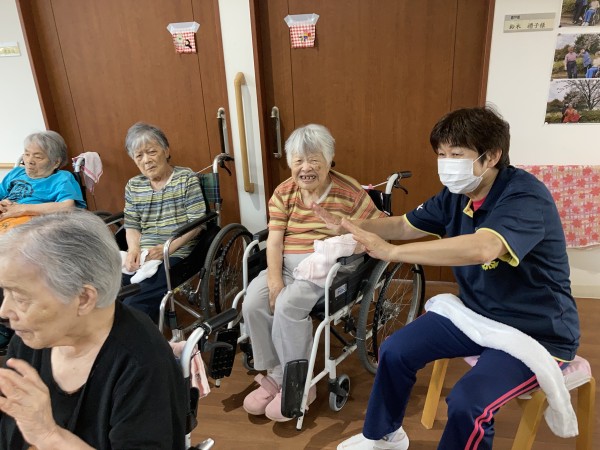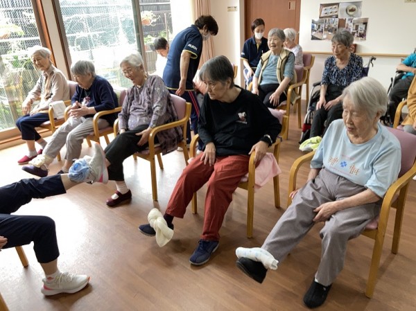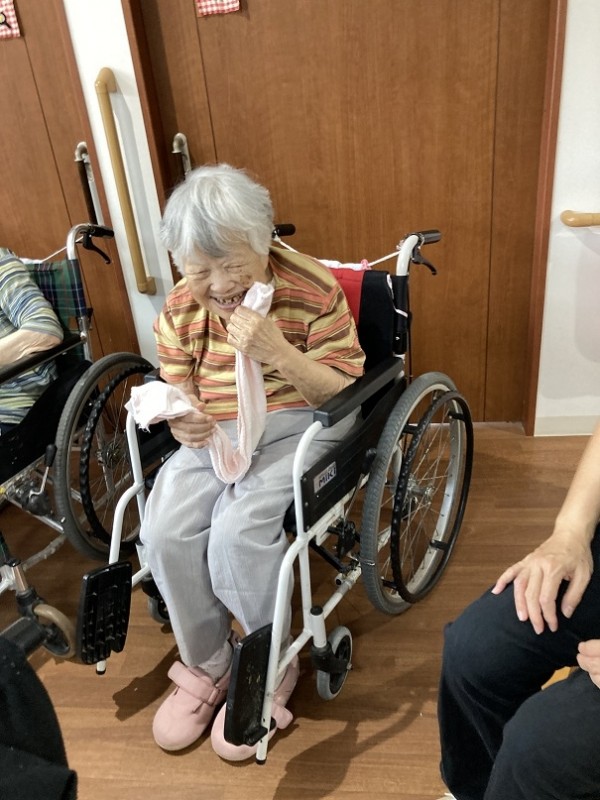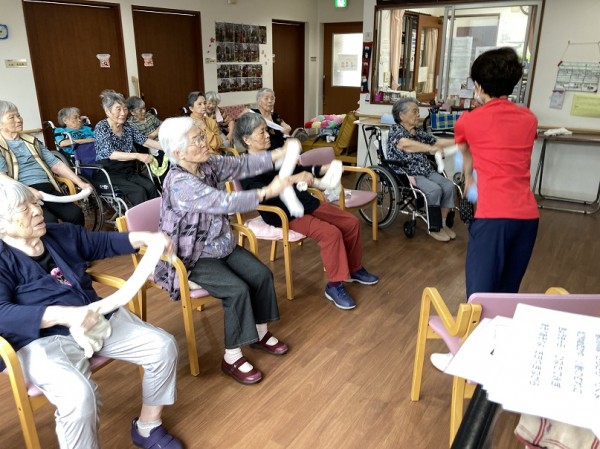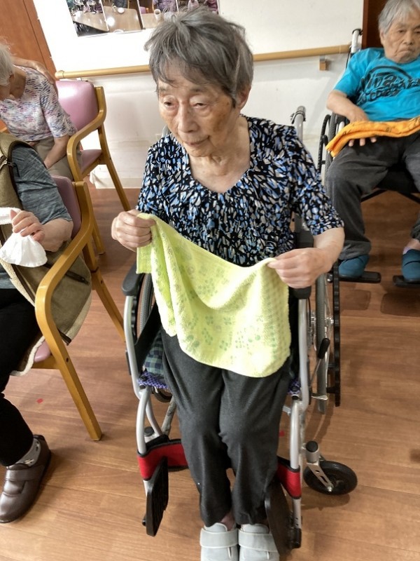 タオルを使った体操は、いつも以上に体を使いますが最後まであきらめず