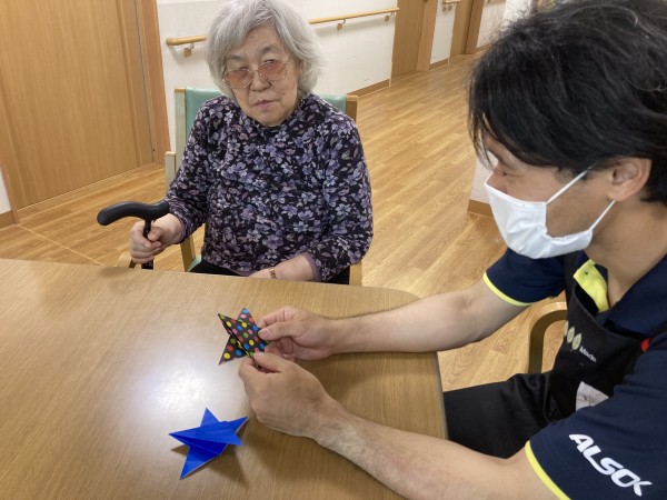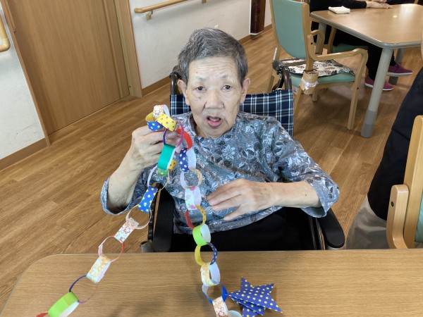 来月の七夕にそなえ飾りつけをご入居者様と行っており、フロアは徐々に七夕モードになっております♪