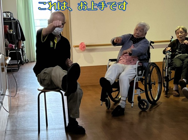 得意技は、ダンスでご入居者様を笑わせる事です。