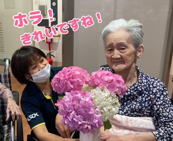 ただ、お部屋とリビングを往復するのではなく、きれいなお花があれば、それをご入居者様と楽しむ。