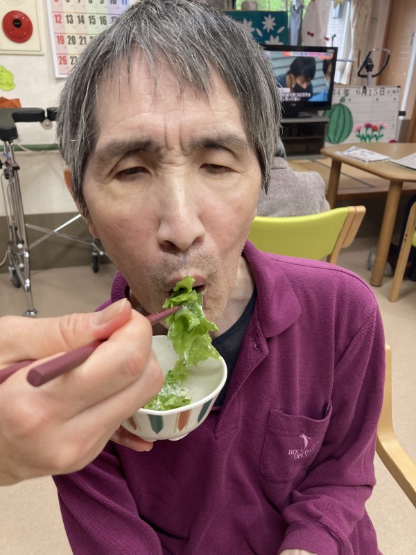 今日のお昼にスマイルサポート課で育てたリーフレタスを頂きました。