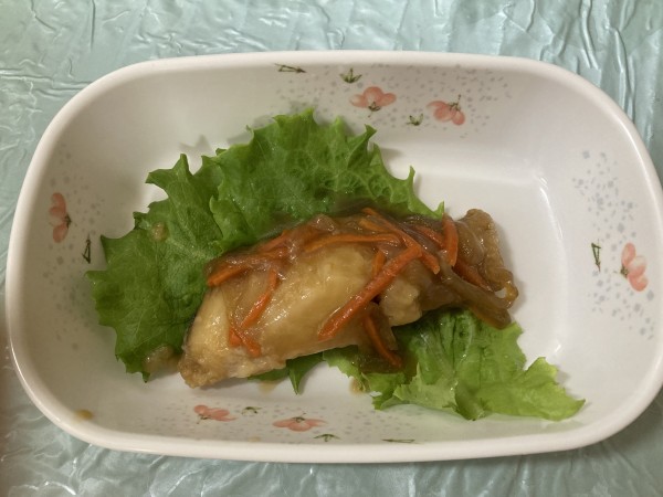 皆様でお昼ご飯のメインの白身魚の南蛮漬けに添えてみました。