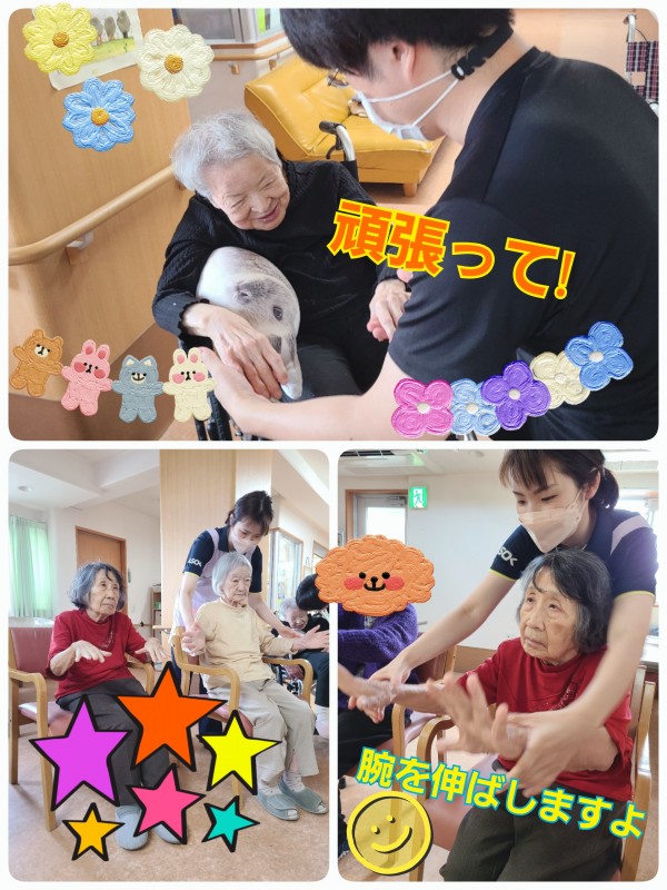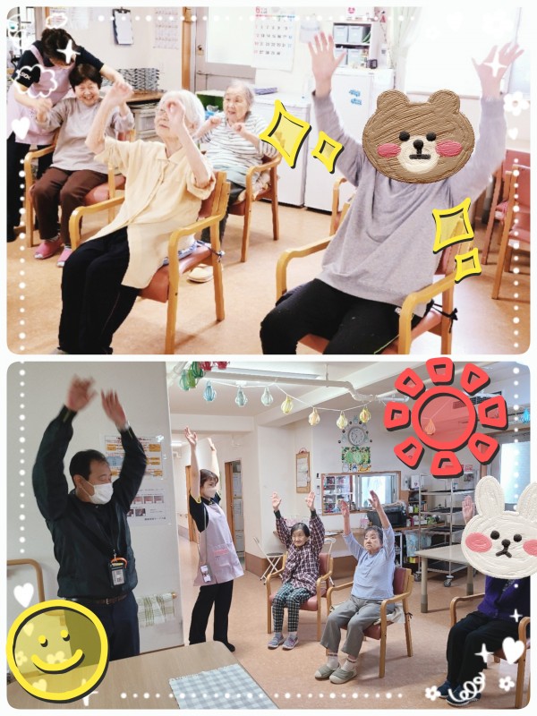 4階のマドンナK様も一生懸命参加しており、隣では夜勤明けのA職員も一緒に参加(*'▽')」