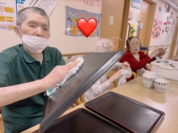 こちらは食後に食器拭きをしてくださっています。