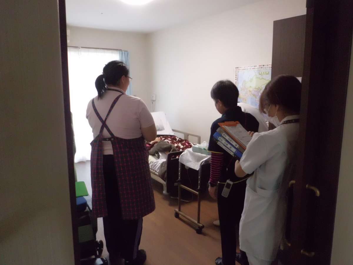 診察中は、看護師・ケアマネ・施設長が同席して、日々の健康状態などの情報提供や健康相談を行い、主治医の先生から助言をいただきます。