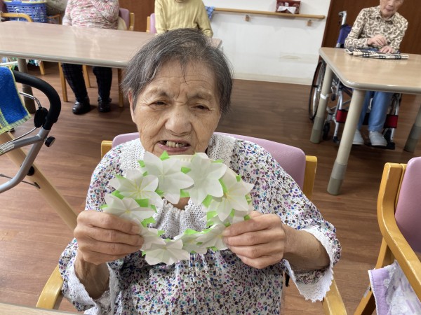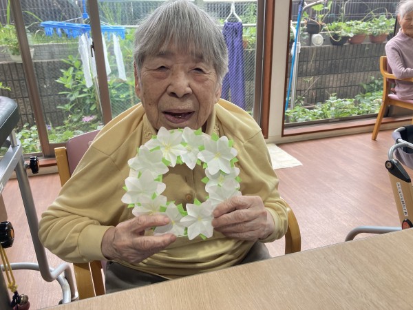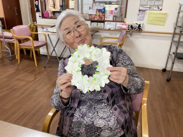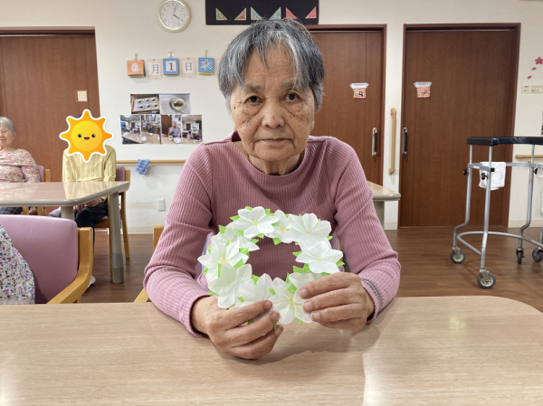 くちなしの花のリースで記念撮影をしました(*^^)v