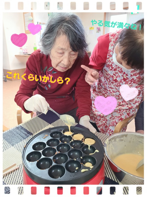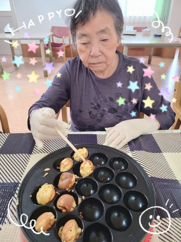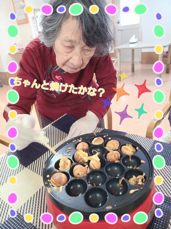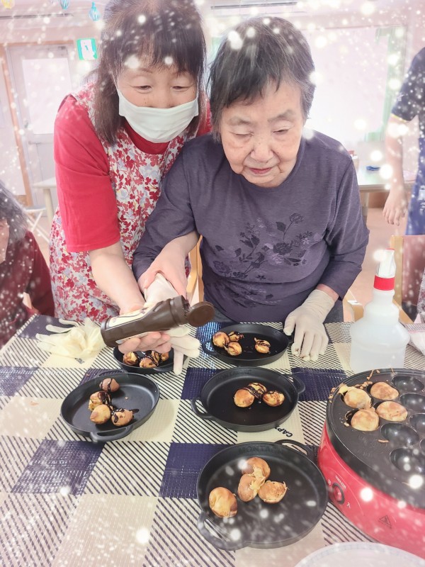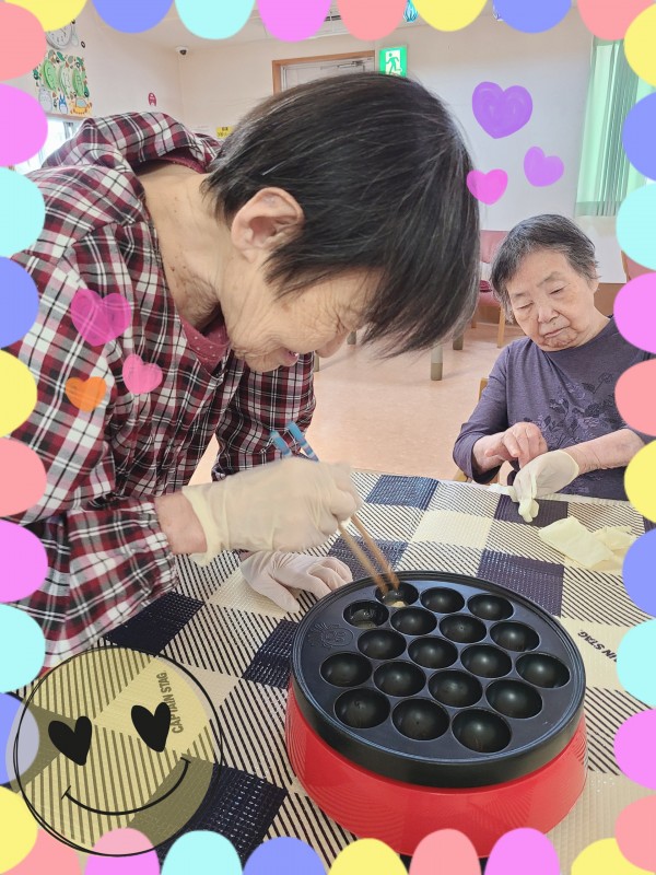 「おやつ作りますよ」と勝手にテーブルの上に材料とたこ焼き機を準備し置いていくU職員。