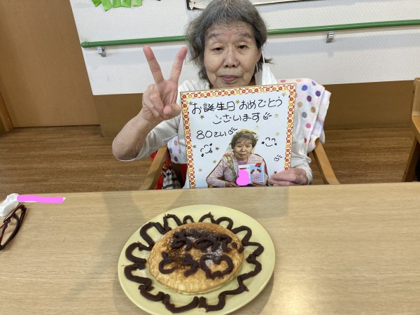 ○○様おめでとうございます!入居者全員でハッピーバースデーの歌でお祝いしました(^o^)丿