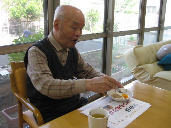 父の日でお祝いを行いました!! 思い出を話し合ったりして笑いがとまりませんでした( ^ω^)・・・ どら焼きを召し上がっていただきました。