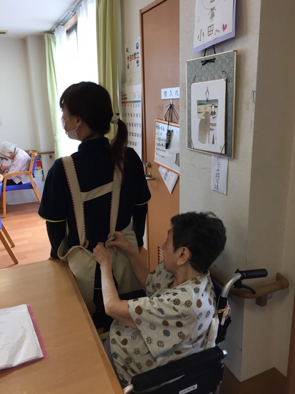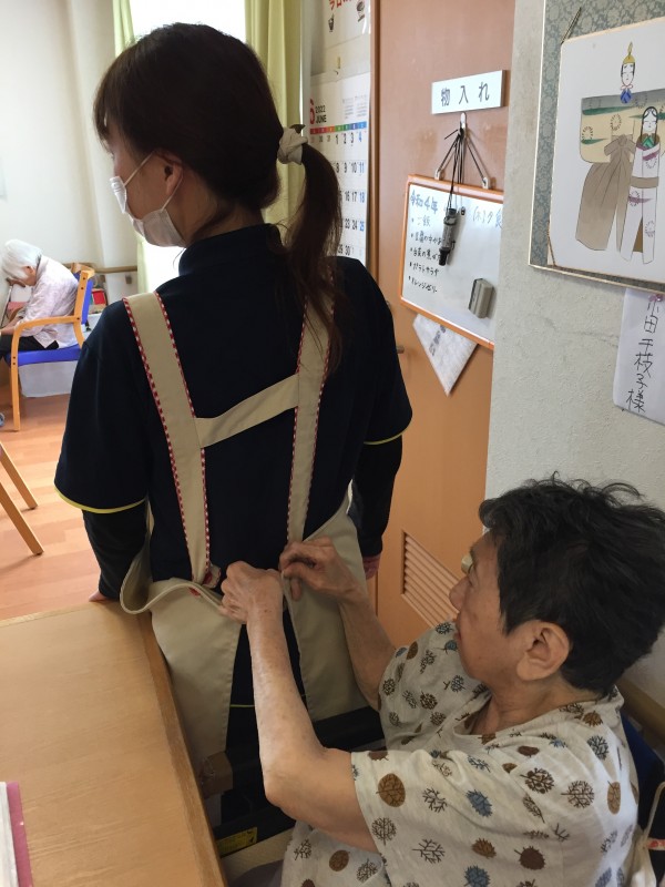 スタッフのエプロンのボタンをはめてくれました(^_-)-☆