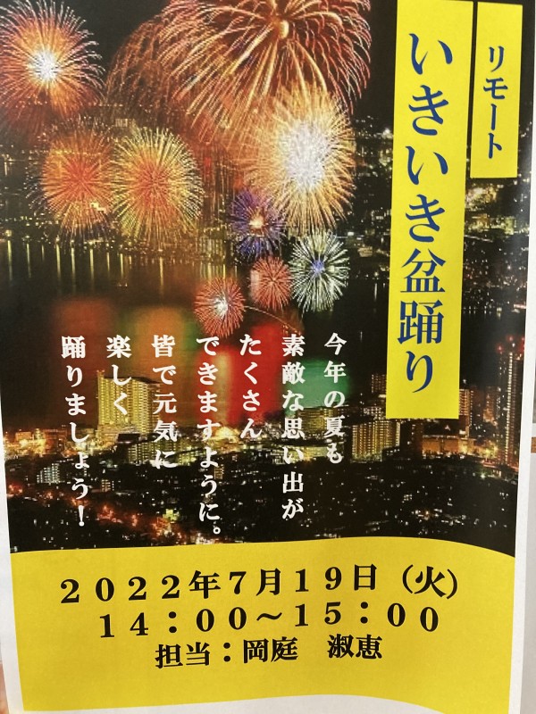 さて…少し早い予告となりますが、来月の19日(約一か月後!!)に【リモートいきいき盆踊り】が行われるとの