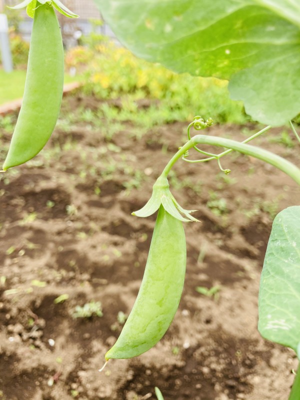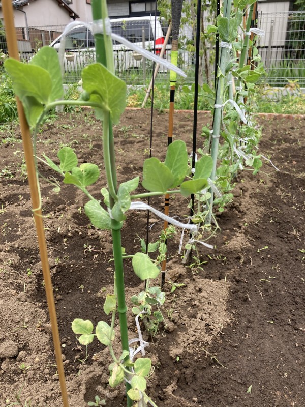畑ではスナップエンドウが成長中です。「すごい!大きくなってる!」皆さん大喜びです。