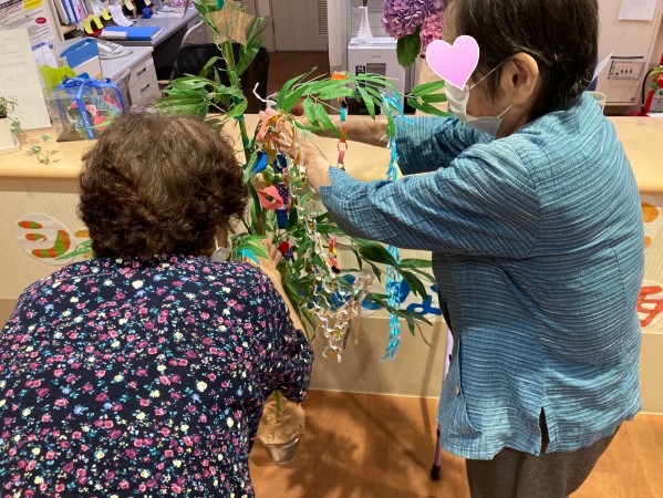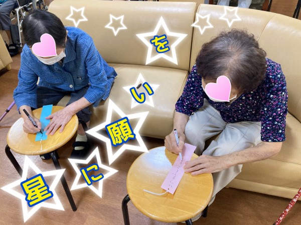 いらっしゃった皆様と一緒に、短冊に思いを込めます。