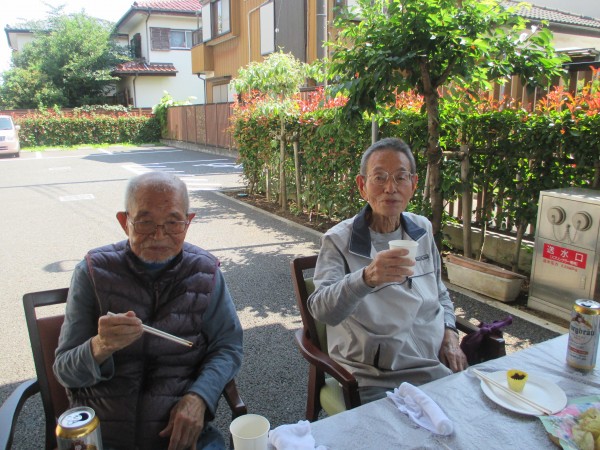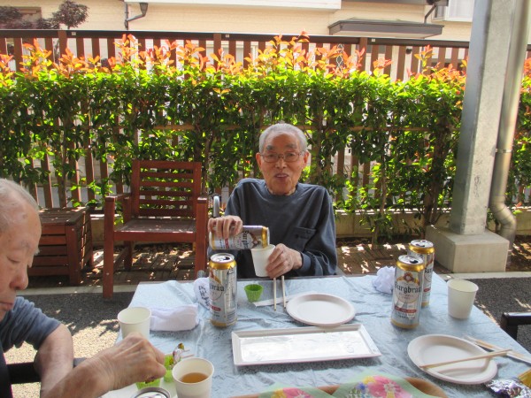 今回は父の日ということで男性のご利用者様に集まってもらい屋外で短い時間ではありますが、ノンアルコールビールとお菓子を皆さんで頂きました(*^-^*)☆