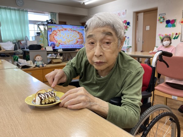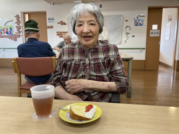 今回はおやつの時間にスタッフさんが作ってくれた手作りケーキを皆様で召し上がりました!(^^)!