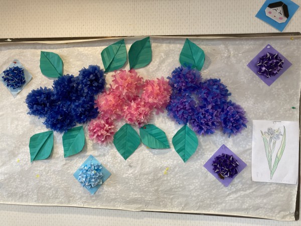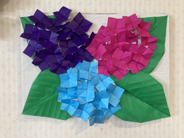 手毬(紫陽花)の花をスタッフさんが作ってくださいました(*^^*)