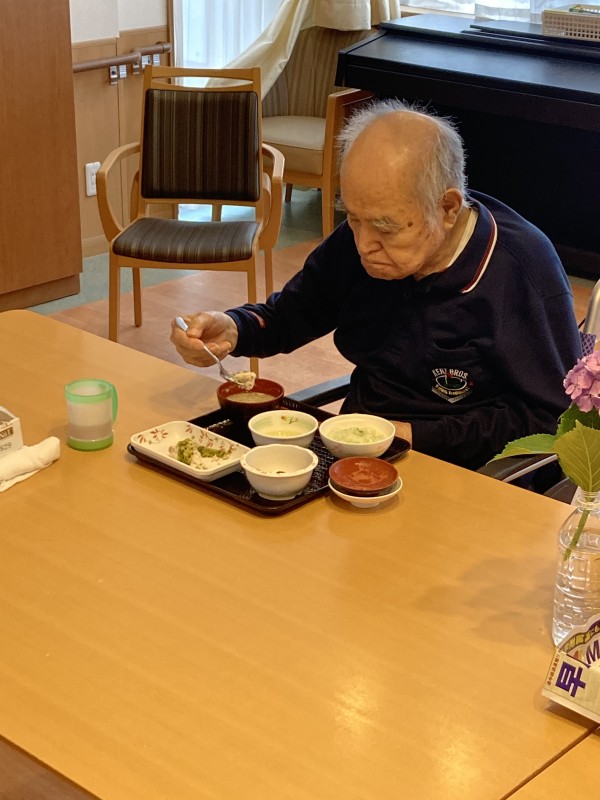施設での食事風景です。皆様美味しそうに食事を摂られております(^^♪