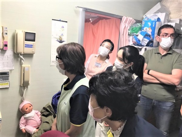 又、車椅子の利用者様は、シーツや毛布を使った運搬法も教えて頂きました。