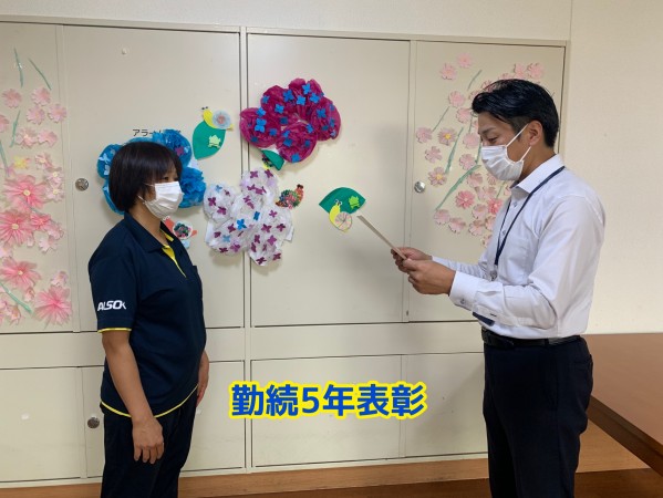 永年勤続5年表彰は、桧山ケアスタッフです。