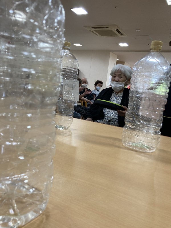 でも、ペットボトルに少し水が入っていてなかなか倒れません