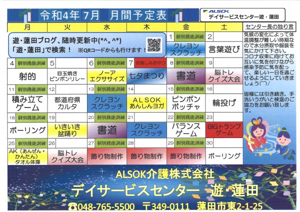 デイサービスセンター遊・蓮田☎:048-765-5500