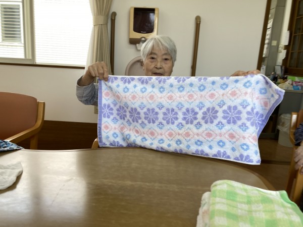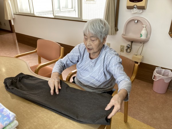 利用者様が乾いた洗濯物を手際よく畳んで下さいました。