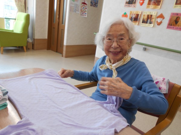 たたんでいる時には「この洋服は誰のかしら」とお話をされながら手伝って下さっています。