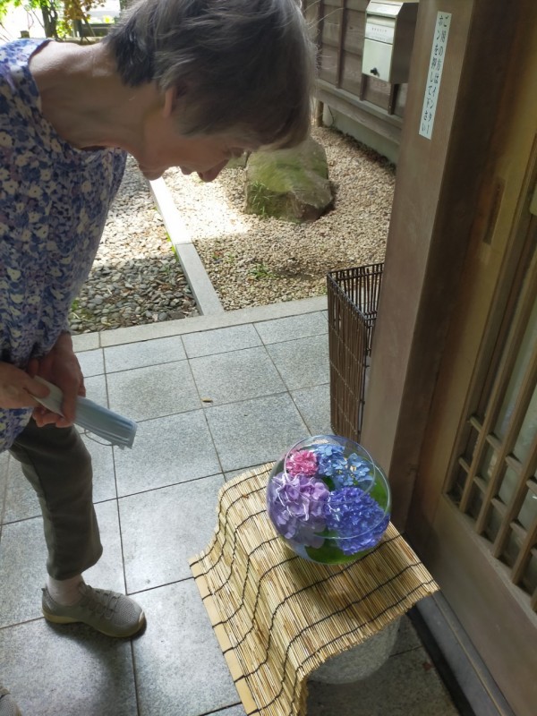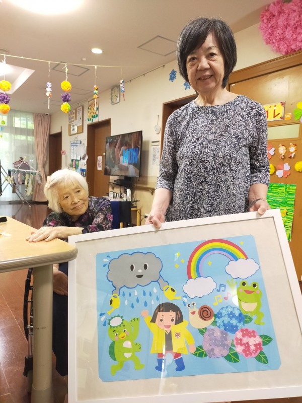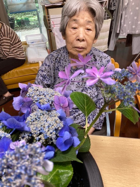 職員のご家族から貼り絵の紫陽花と活けた紫陽花も頂きました。
