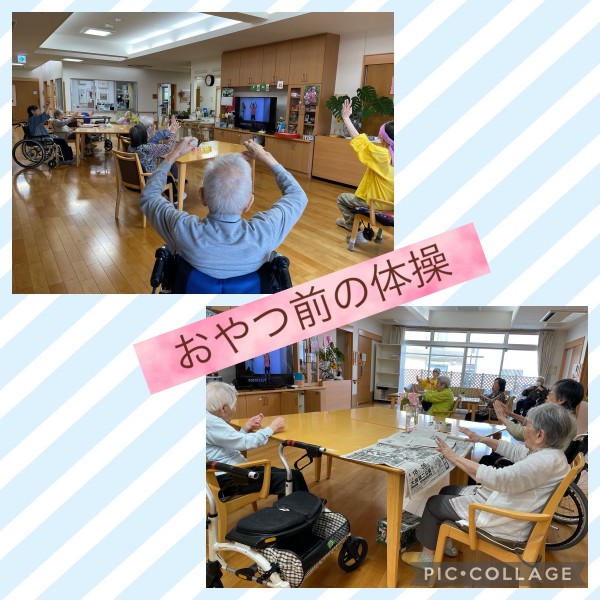以前にもご紹介しましたがこちらの皆さんはよく体操をされます。朝のテレビ体操に始まり、10時のテレビ体操、14時のテレビ体操、15時のおやつ前の体操、そしてもちろん口腔体操も。職員から声をかけなくてもテレビで体操が始まると皆さんご自分のペースで身体を動かされています(・∀・)イイネ!!