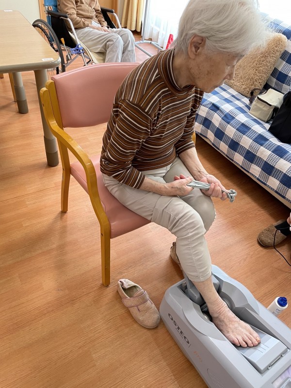 測定器を使って骨密度を調べます。