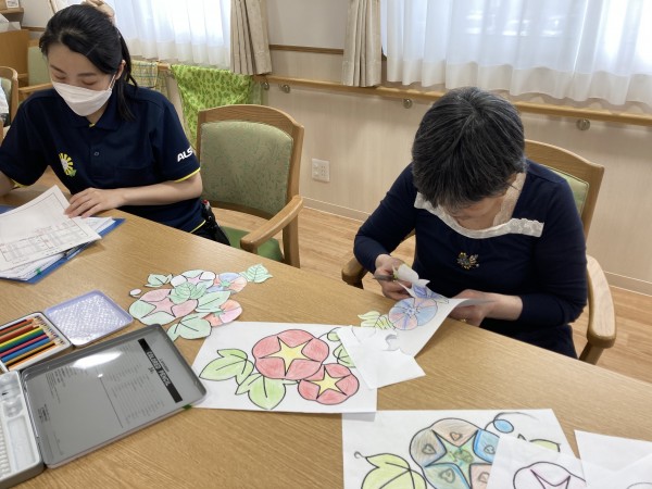 朝顔も咲き始めますね????塗り絵上手に出来ましたね〜(^^)