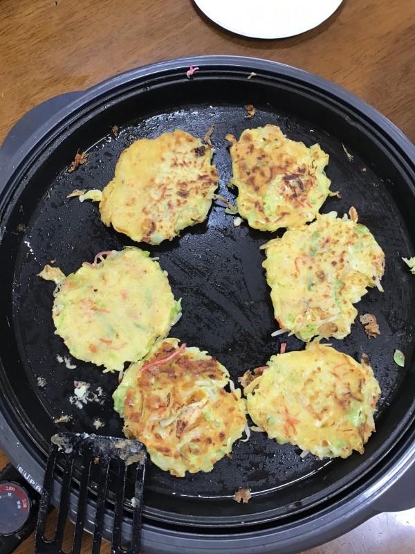 今日は野菜がたくさんあったので、おやつにお好み焼き作っちゃいます?