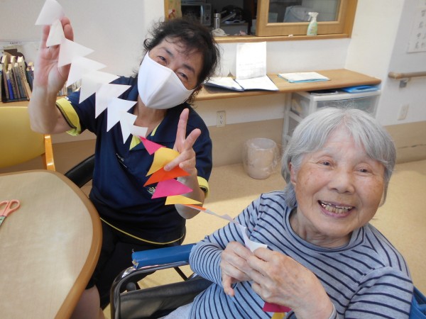 ホームでは七夕飾りを製作中~