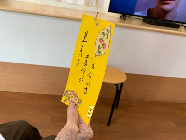 ご入居者様に短冊を書いていただいております。