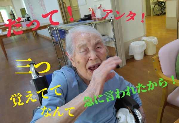 『指の絵とボールペンと…なんだっけ?三つ覚えろって急に言われてさ!1個隠して、なんだって聞くんだよ。時計とボールペンとなんだったかな?急に言われたら、分かんなくなっちゃうじゃない!』