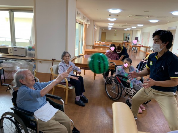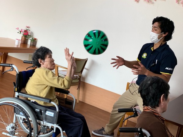 高く投げてみたり、テンポ良く数回キャッチボールしたり、それを皆様と繰り返していきます。