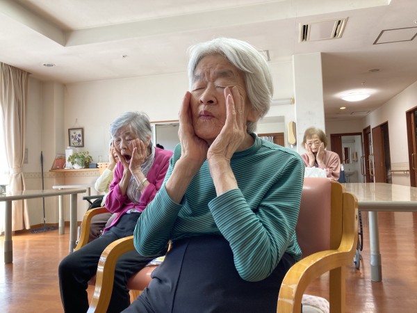 顔を触りながら、あんしんサンド呼吸=誤嚥防止