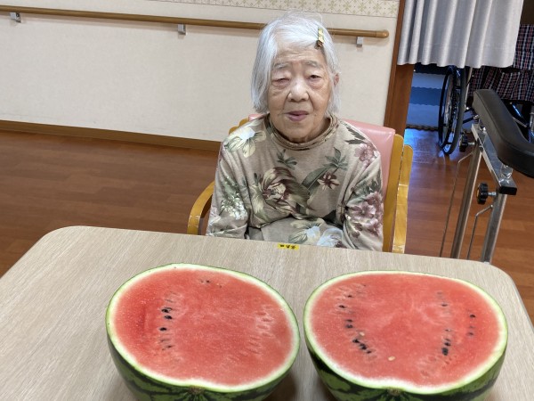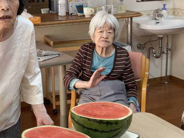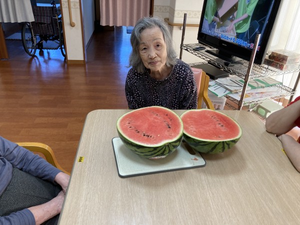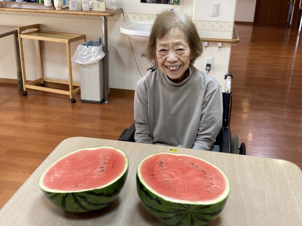 利用者様も大きいスイカを見てビックリ!(^^)!