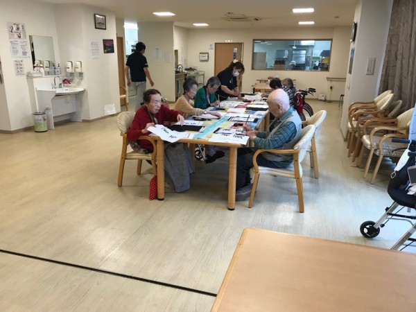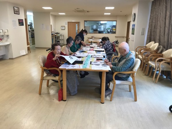 皆様、習字に没頭しております。素晴らしい集中力です。