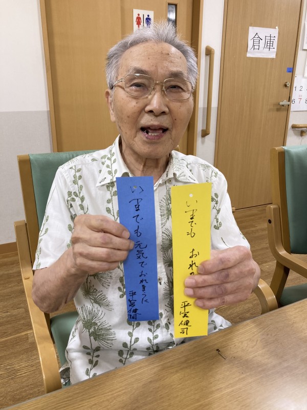 また、七夕に向けて皆さんと短冊にお願い事を書きました(#^.^#)