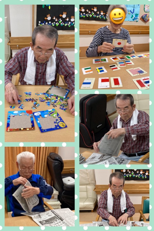 そしてレクリエーションでは・・・小さなパズルを集中され早々完成!次はもっと難しくしましょうか笑??とお伝えするとやるよー!!と笑の顔ご入居者様