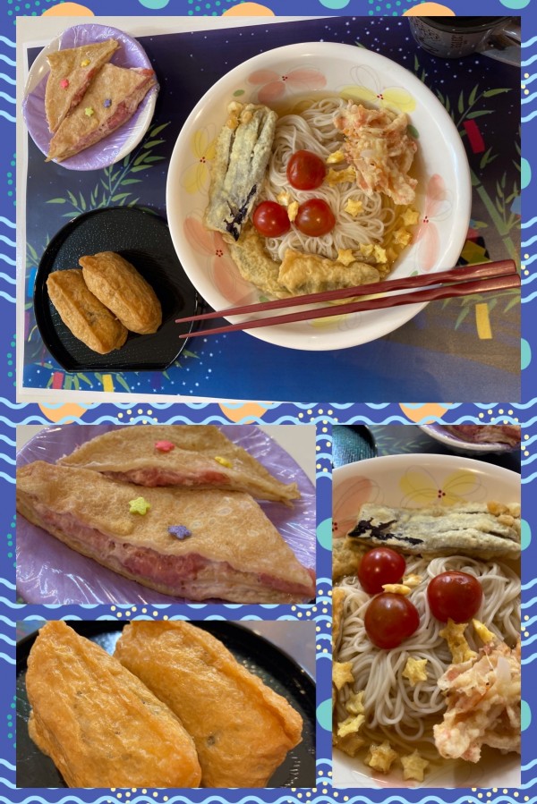 ☆そうめんに小さな星を飾りました!('ω')☆天ぷらの良い香りが漂い~( ˘ω˘ )♡