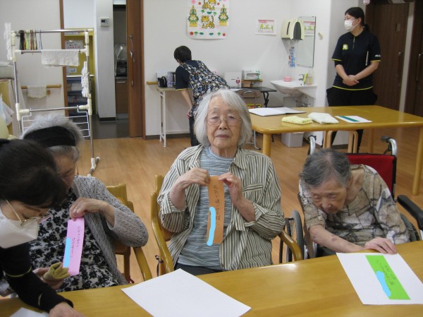 こんにちは! グループホームみんなの家・あきがせの介護ブログです! よろしくお願いいたします。 今日は七夕に向けて短冊作りを行った時のご様子をお知らせいたします!!