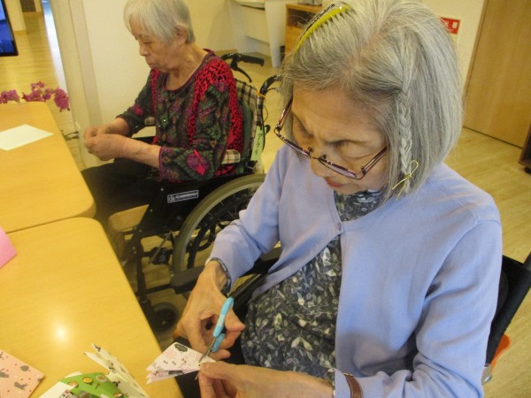 色紙を切ったり、貼ったり工夫しながら、飾り作りです。