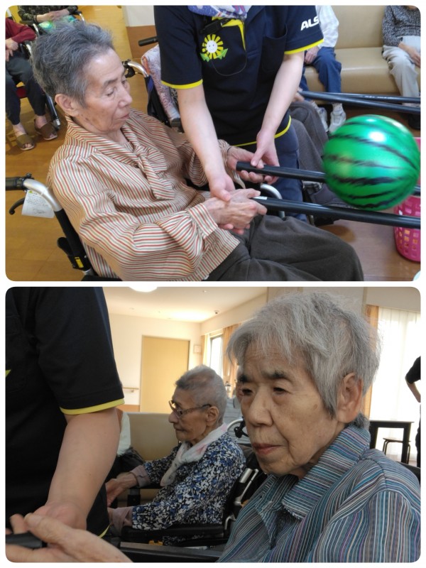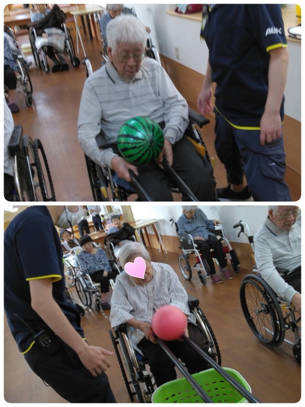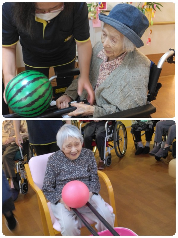 大きなボールや、小さな水風船など、いろんな玉を転がします。
