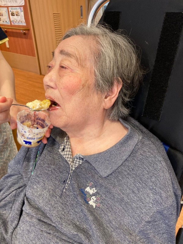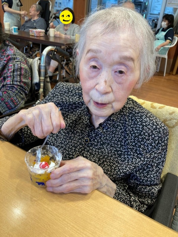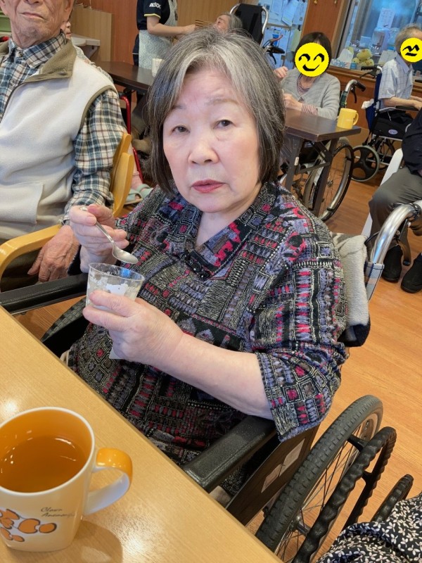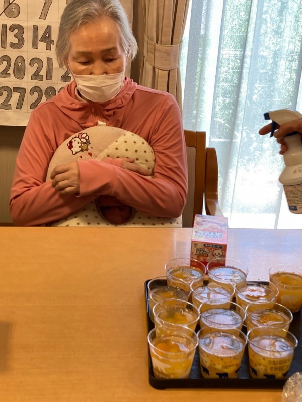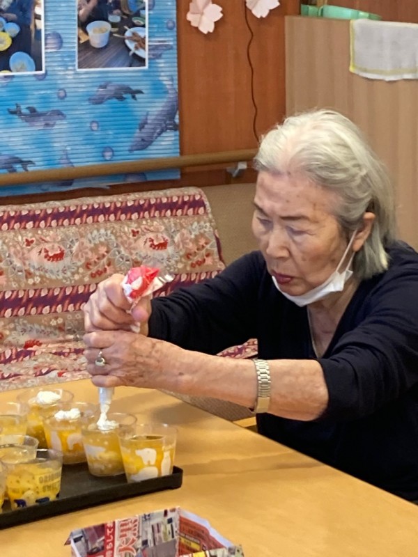 スタッフが作ったゼリーに、入居者様がホイップクリームをのせるお手伝いをして下さりました( *´艸`)
