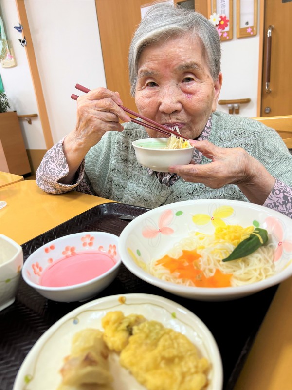 今回7月7日の七夕の日に「そうめん」がお食事で提供されました!